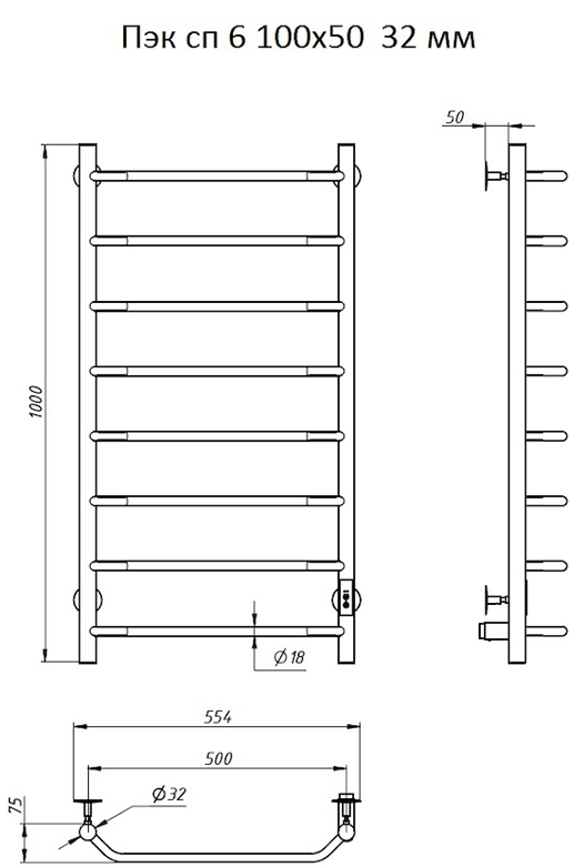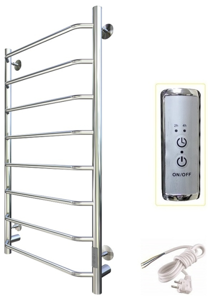 ПЭК — Полотенцесушитель электрический кабельный. Изделие производится из нержавеющей стали AISI 201. Вертикальные трубы d -32 мм., для горизонтальных вставок используется труба d — 18 мм.Нагревательным элементом в полотенцесушителе является греющий кабель — аналог «теплого пола», кабель заправляется внутрь каждой трубы и передает тепло на поверхность изделия. Во включенном состоянии постоянно поддерживается температура 50-600.Экономичность: Полотенцесушитель снабжен панелью управления. Кнопка включения/выключения и таймер на 2 часа и 4 часа, который позволяет включать изделие на ограниченное время. Эта функция дает возможность экономить электричество.Мощность электрического прибора порядка 60W при стоимости 1 кВт — 5 руб несложно посчитать: 60W х 24 = 1,5 кВт в сутки. Стоимость эксплуатации изделия за сутки 1,5 кВт х 5 руб. = 7,5 руб. Максимальный расход электричества за месяц примерно 225 руб. При условии если сушка работает круглосуточно.Удобство монтажа: Полотенцесушитель крепится к стене на четыре держателя. Универсальное исполнение изделия позволяет подключить его, как справа, так и слева.Скрытое подключение: Благодаря приваренным в нижней части вертикальных труб двум распаячным коробкам, в которых соединяется электропроводка, возможно скрытое подключение к электричеству слева и справа.Подключение в розетку: В комплекте также имеется шнур с вилкой, который будет необходим при подключении к розетке.Панель включения:РЕЖИМ №1 — постоянный нагревРЕЖИМ №2 — работа в течение 2 часов с последующим отключением.РЕЖИМ №3 — работа в течение 4 часов с последующим отключением.