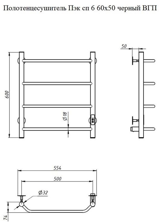 Электрический полотенцесушитель Тругор Пэк сп 6 60x50см белый Пэксп6/6050белыйВГП