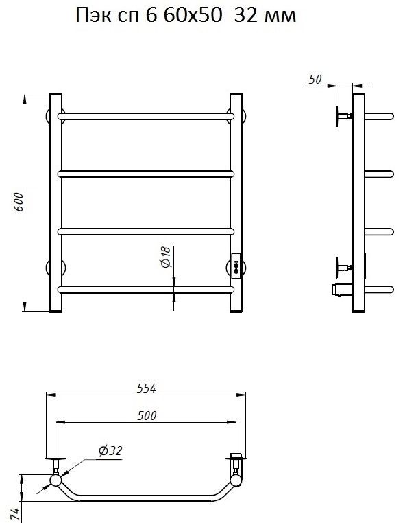 ПЭК — Полотенцесушитель электрический кабельный. Изделие производится из нержавеющей стали AISI 201. Вертикальные трубы d -32 мм., для горизонтальных вставок используется труба d — 18 мм.Нагревательным элементом в полотенцесушителе является греющий кабель — аналог «теплого пола», кабель заправляется внутрь каждой трубы и передает тепло на поверхность изделия. Во включенном состоянии постоянно поддерживается температура 50-600.Экономичность: Полотенцесушитель снабжен панелью управления. Кнопка включения/выключения и таймер на 2 часа и 4 часа, который позволяет включать изделие на ограниченное время. Эта функция дает возможность экономить электричество.Мощность электрического прибора порядка 60W при стоимости 1 кВт — 5 руб несложно посчитать: 60W х 24 = 1,5 кВт в сутки. Стоимость эксплуатации изделия за сутки 1,5 кВт х 5 руб. = 7,5 руб. Максимальный расход электричества за месяц примерно 225 руб. При условии если сушка работает круглосуточно.Удобство монтажа: Полотенцесушитель крепится к стене на четыре держателя. Универсальное исполнение изделия позволяет подключить его, как справа, так и слева.Скрытое подключение: Благодаря приваренным в нижней части вертикальных труб двум распаячным коробкам, в которых соединяется электропроводка, возможно скрытое подключение к электричеству слева и справа.Подключение в розетку: В комплекте также имеется шнур с вилкой, который будет необходим при подключении к розетке.Панель включения:РЕЖИМ №1 — постоянный нагревРЕЖИМ №2 — работа в течение 2 часов с последующим отключением.РЕЖИМ №3 — работа в течение 4 часов с последующим отключением.