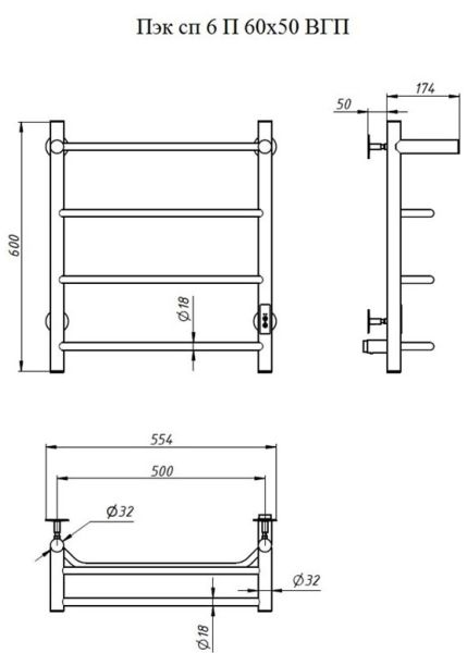 Электрический полотенцесушитель Тругор Пэк сп 6 П с полкой 60x50см чёрный Пэксп6П/6050черныйВГП купить