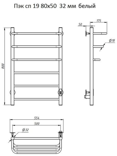 Электрический полотенцесушитель Тругор Пэксп19/8050белыйВГП Пэк сп 19 80x50см белый купить