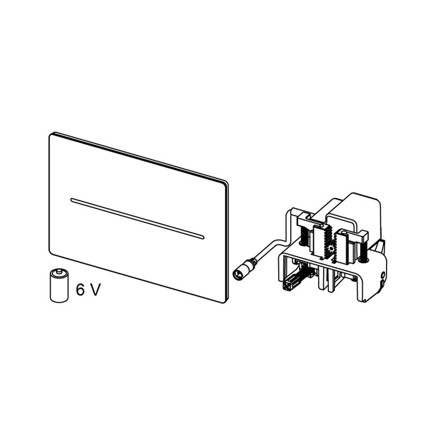 Электронная панель смыва с гигиеничной бесконтактной активацией смыва для стандартных бачков ТЕСЕ (глубиной 13 см) с фронтальной активацией и высотой высотой установки около 1 м (центр панели смыва). Плоская панель из нержавеющей стали в комплекте с крепежными элементами, герметичным отсеком для батарей для установки внутри бачка (4 батареи тип Mono/D/LR 20) и электроприводом смыва для систем двойного смыва. Совместима с контейнером для гигиенических таблеток.