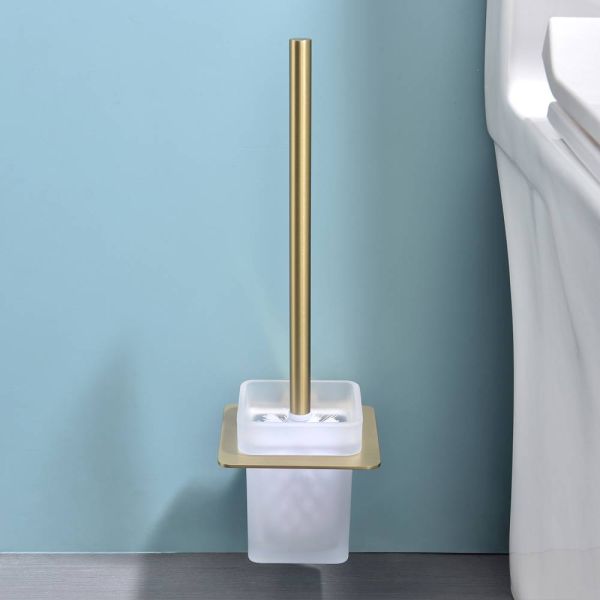 Raglo R301.10.03 Ершик для унитаза настенный с держателем. Форма квадратная, цвет - сатиновое золото, полуматовое покрытие. Крепление в комплекте, в комплекте две насадки!