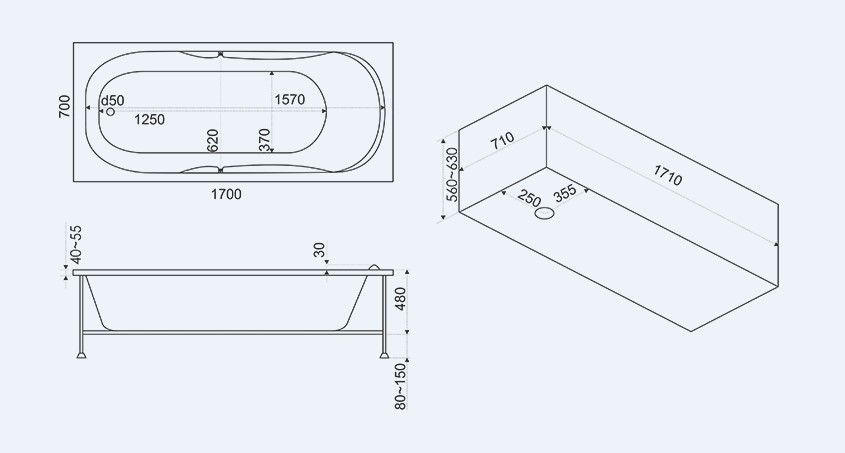 Фронтальная панель для ванны Bas Нептун Standart 170