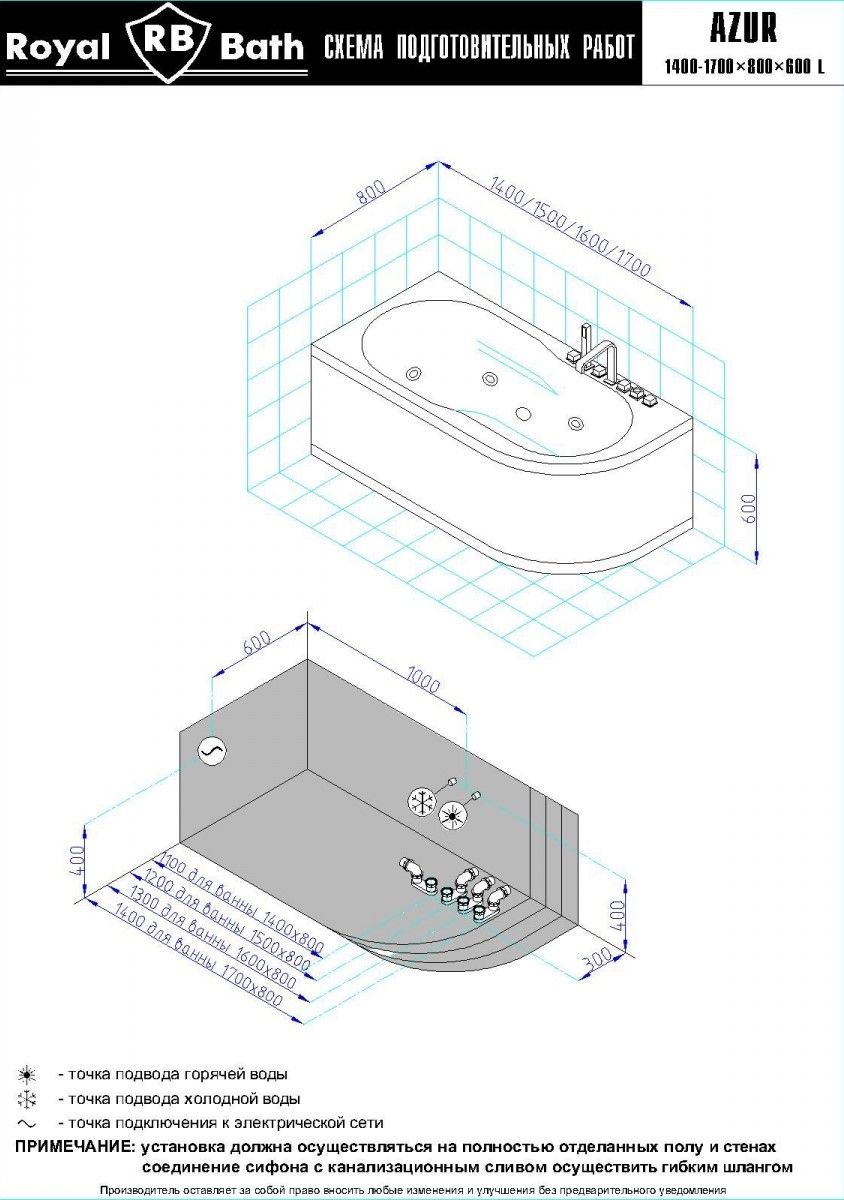Гидромассажная ванна Royal Bath Azur Standart 140x80см левая белый RB614200ST-L купить