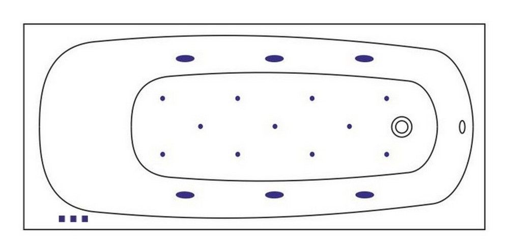 - Аэромассажная система (11 форсунок AERO-JET) с функцией регулировки интенсивности массажа;