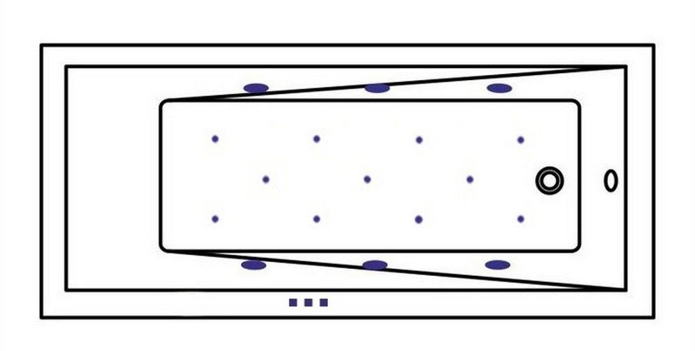 - Аэромассажная система (11 форсунок AERO-JET) с функцией регулировки интенсивности массажа;