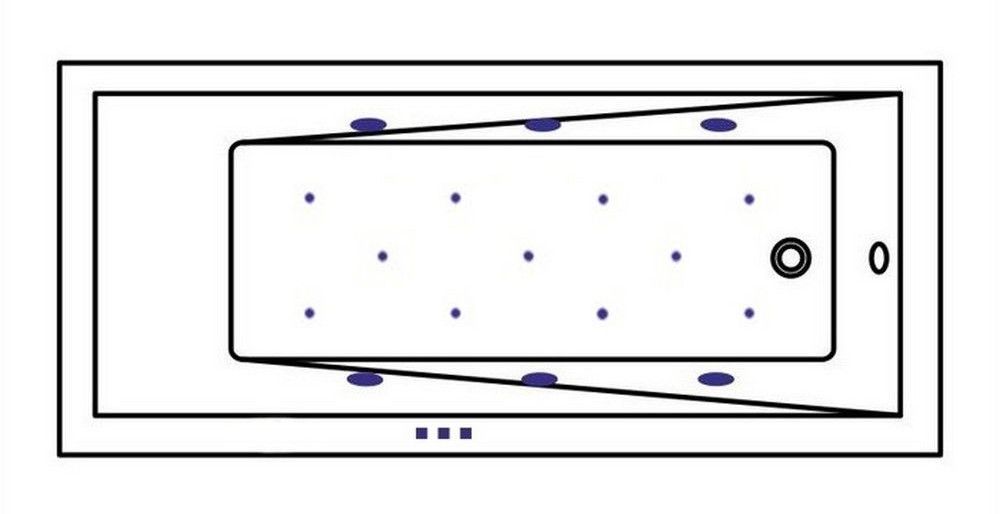 - Аэромассажная система (11 форсунок AERO-JET) с функцией регулировки интенсивности массажа;