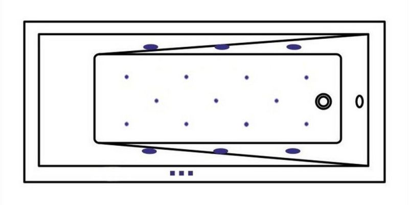 - Аэромассажная система (11 форсунок AERO-JET) с функцией регулировки интенсивности массажа;