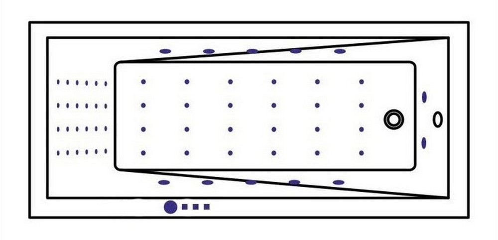 - Аэромассажная система (24 форсунок NANO-JET) с функцией регулировки интенсивности массажа;