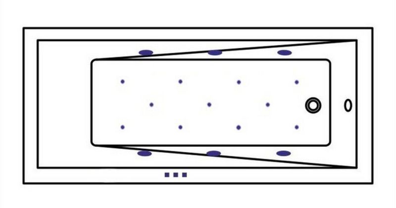- Аэромассажная система (11 форсунок AERO-JET) с функцией регулировки интенсивности массажа;
