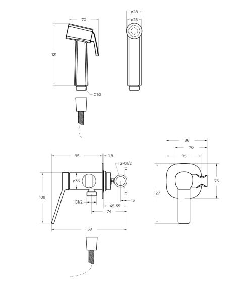 Латунь Рычажное управление Длина шланга: 120 см Пластиковый шланг Места соединений шланга с... Подробнее