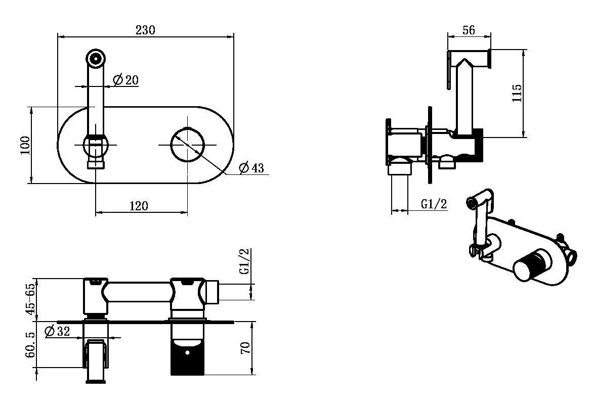 Гигиенический душ со смесителем Boheme Stick 127-BCR.2.Характеристики:Цвет: черный матовый, хром.