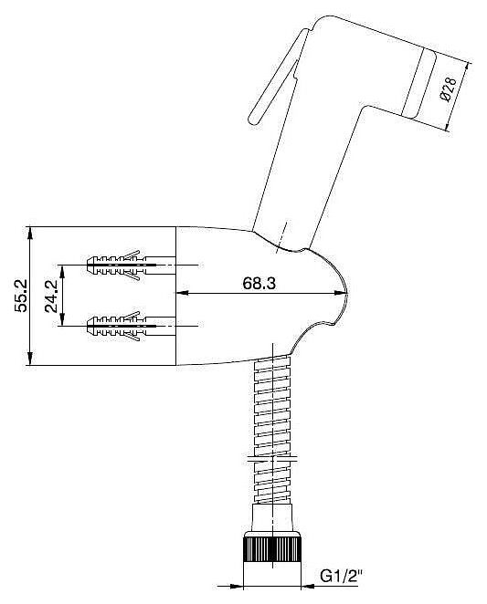 Гигиенический душ E.C.A предназначен для использования в туалетных комнатах. Модель оснащена рычагом для подачи воды. Изделие выполнено из пластика.Дополнительные характеристики: