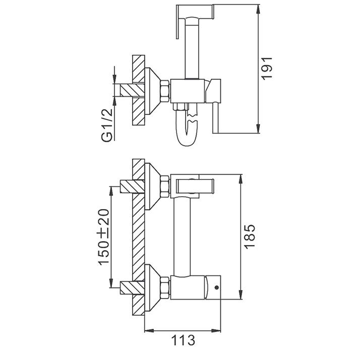 Способ монтажа:На два отверстия, Настенные
