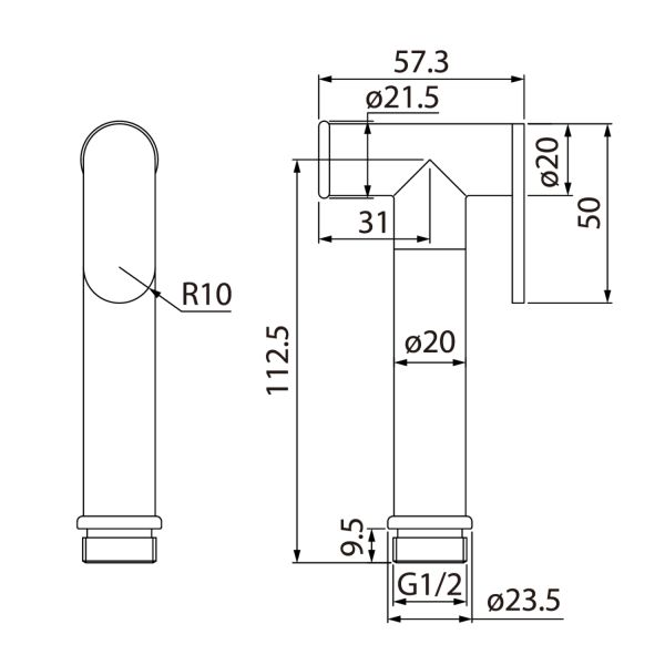 Гигиеническая лейка, 1 режим (Rain), диаметр 21,5 мм, хром, латунь.