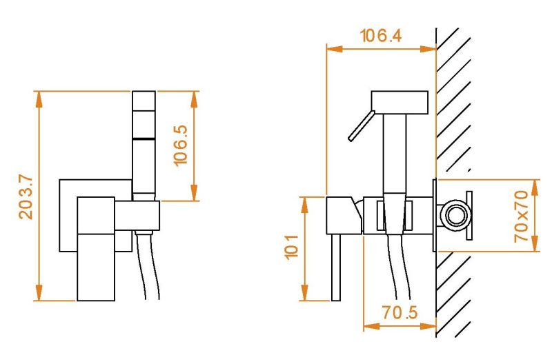 Гигиенический душ — это компактная альтернатива биде. Если у вас маленький туалет, где нет возможности установить еще одну сантехническую конструкцию, на выручку приходит данный аксессуар. Он выполнен в виде душевой лейки с клавишей (кнопкой) и шланга, которая фиксируется на смесителе. Смеситель состоит из высококачественной латуни встраивается в стену. Устанавливается рядом с унитазом и помогает поддерживать личную гигиену.