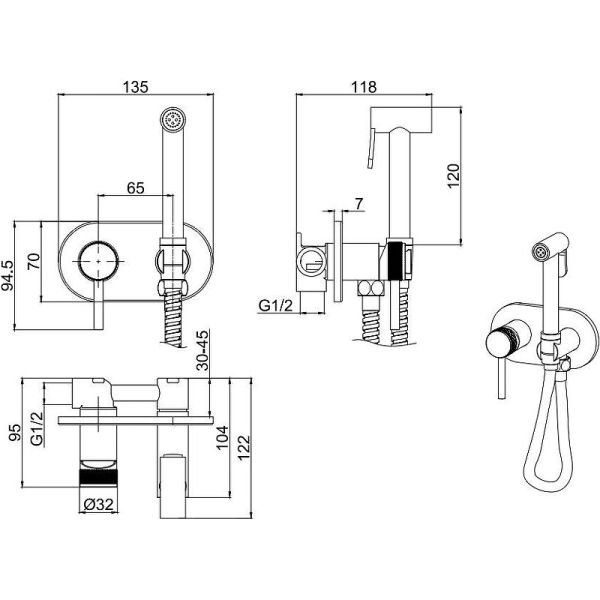 Гигиенический душ со смесителем Allen Brau Priority 5.31005-31 Черный матовый