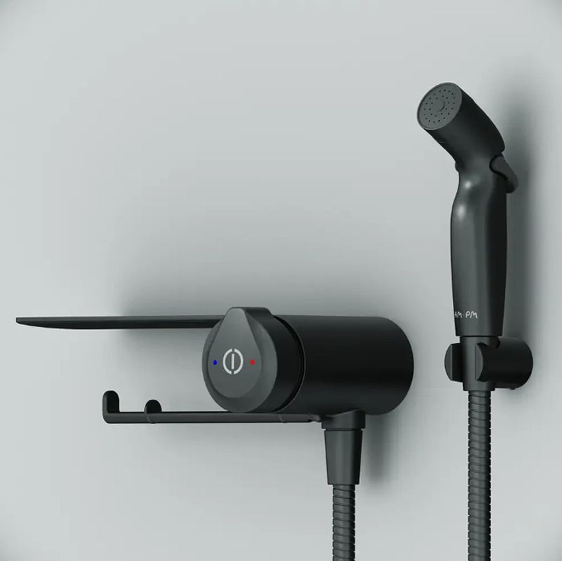 Гигиенический душ со смесителем AM.PM X-Joy TouchReel F0H85A822 Черный матовыйПервая в мире коллекция нажимных смесителей для ванной комнаты была создана в рамках коллекции X-Joy всемирно известным дизайн-бюро GP designpartners, Австрия.Интуитивная понятная система управления TouchReel для включения/выключения смесителя одним нажатием.Максимально простое управление температурой воды для тех, кто не хочет ничего настраивать. Весь продукт представляет собой удобную полочку, на которой можно разместить все, что необходимо вам под рукой. На интегрированном держателе можно размещать туалетную бумагу, а на крючке - полотенце.