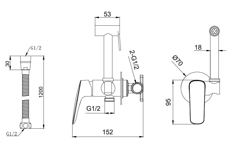 • Гигиеническая лейка оснащена нажимным механизмом для остановки потока воды