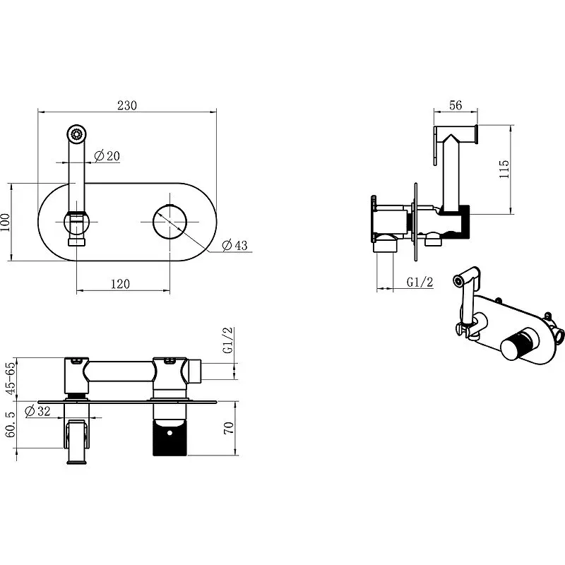 Гигиенический душ Boheme Stick, со смесителем, Материал: латунь. Управление: однорычажное. К... Подробнее