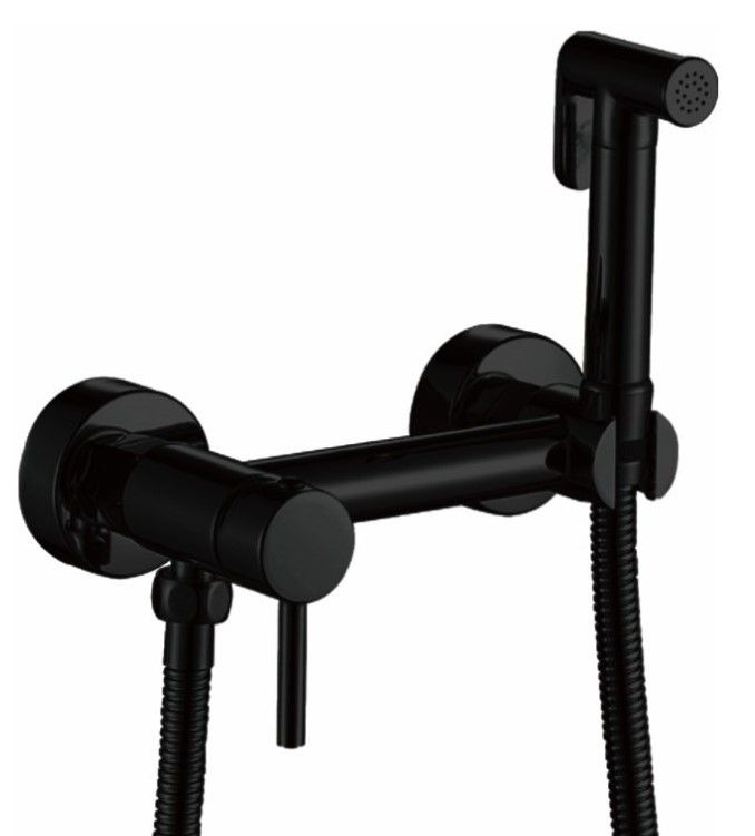 Гигиенический душ со смесителем бренда Haiba.Цвет: черный.В комплект входят: держатель для гигиенической лейки, 2 эксцентрика, лейка, шланг.Керамический картридж 30 мм.Металлическая рукоятка.Душевой шланг 1 метр.Душевая лейка на 1 режим.