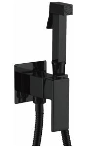 Гигиенический душ со смесителем бренда Haiba.Цвет: черный.В комплект входят: держатель для гигиенической лейки, лейка, шланг.Керамический картридж 30 мм.Металлическая рукоятка.Душевой шланг 1 метр.Душевая лейка на 1 режим.
