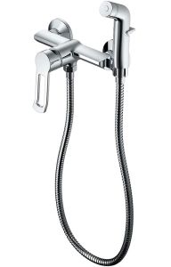 Гигиенический душ со смесителем бренда Haiba.Цвет: хром.В комплект входят: держатель для гигиенической лейки, 2 эксцентрика, лейка, шланг.Керамический картридж 35 мм.Металлическая рукоятка.Душевой шланг 1 метр.Душевая лейка на 1 режим.