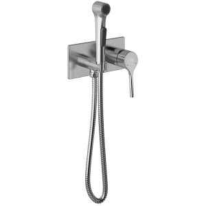 Гигиенический душ Elate французской компании Jacob Delafon станет превосходным вариантом для малогабаритного санузла. Он изготовлен из латуни, не подверженной негативному воздействию внешней среды. На хромированной поверхности не образуются разводы и потеки, а известковый налет легко удаляется при вытирании насухо. Изделие сохраняет свой глянец даже спустя долгое время эксплуатации. Пластиковая лейка оснащена эргономичной антискользящей кнопкой, что обеспечивает удобство управления подачей воды. Металлический шланг в двойной оплетке долговечен