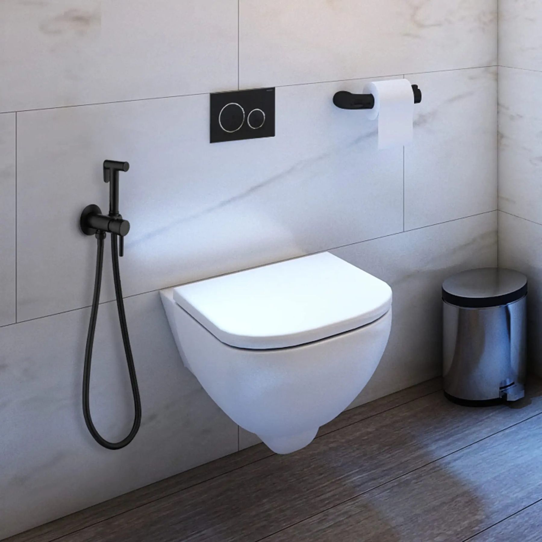 Гигиенический душ со смесителем Maretti Eleganza ENB30RV65 в элегантном черном матовом цвете сочетает в себе современный дизайн и высокую функциональность. Округлая форма и минималистичный дизайн делают его идеальным дополнением для любой ванной комнаты, придавая ей изысканность и стиль.Внутренний (скрытый) монтаж позволяет скрыть все технические детали, оставляя на виду только чистые линии и безупречный внешний вид. В комплекте идет внутренняя часть, обеспечивающая легкий и быстрый монтаж.Изготовленный из прочной латуни, этот гигиенический душ оснащен керамическим картриджем и рычажным управлением, что гарантирует долговечность и плавную регулировку воды. Душевой шланг в двойной металлической оплетке длиной 150 см обеспечивает надежность и устойчивость к износу.Гигиеническая лейка и держатель, также выполненные из латуни, подчеркивают премиальное качество и внимание к деталям. Этот душ станет не только удобным и практичным дополнением вашей ванной комнаты, но и стильным элементом, который улучшит общий вид и повысит уровень комфорта.С гарантией на 5 лет вы можете быть уверены в надежности и долговечности этого продукта, который будет радовать вас на протяжении долгого времени.