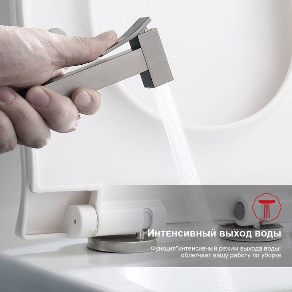 Смеситель с гигиеническим душем R01.51.09 предназначен для обеспечения гигиены в санузле. Крепления идут в комплекте, чтобы их не было видно все скрывается квадратной накладкой, на которой размещается смеситель. Гигиенический душ не занимает много места. При этом он добавляет комфорта в ежедневные процедуры. Для запуска потока воды достаточно немного нажать рычаг расположенный на лейке. Напор регулируется силой нажатия. Латунная душевая лейка работает в одном режиме. Высокопрочный душевой шланг - 1200 мм в оплетки двойного вальцевания с трубкой из синтетического каучука, вращающийся на 360 градусов. Гигиенический душ поставляется в фирменной индивидуальной упаковке.