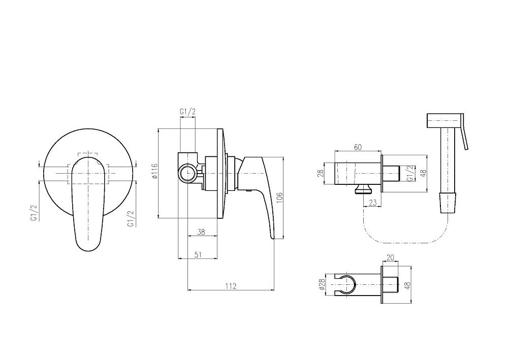 Смеситель/Лейка/Шланг/Держатель