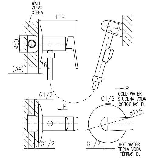 Гигиенический душ со смесителем Rav Slezak Colorado CO147/1CMATZ черный золото