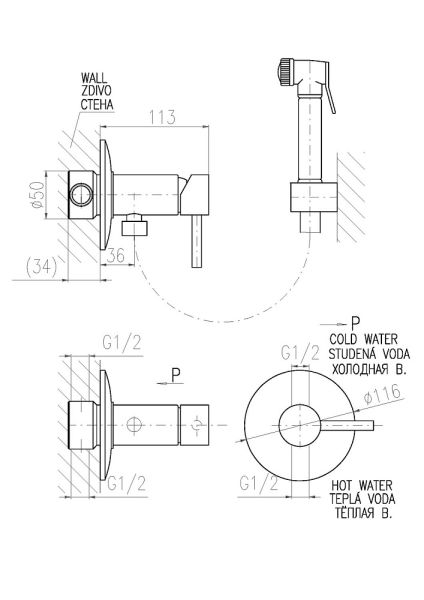 Гигиенический душ со смесителем Rav Slezak Seina SE947/1CMAT черный