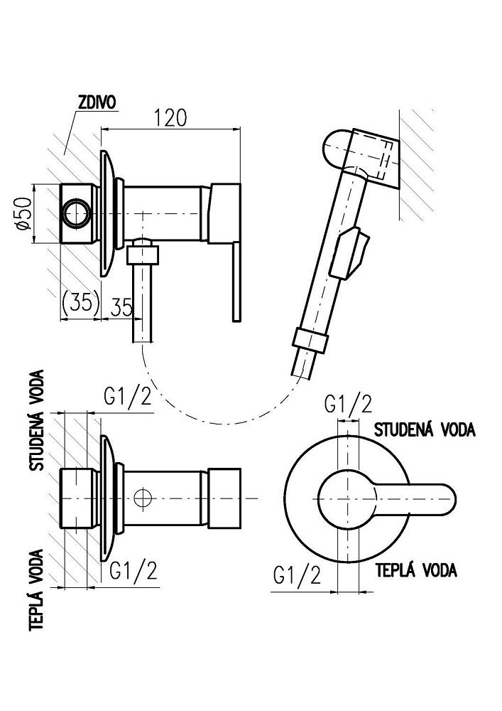 Гигиенический душ со смесителем Rav Slezak Zambezi ZA047/1 хром