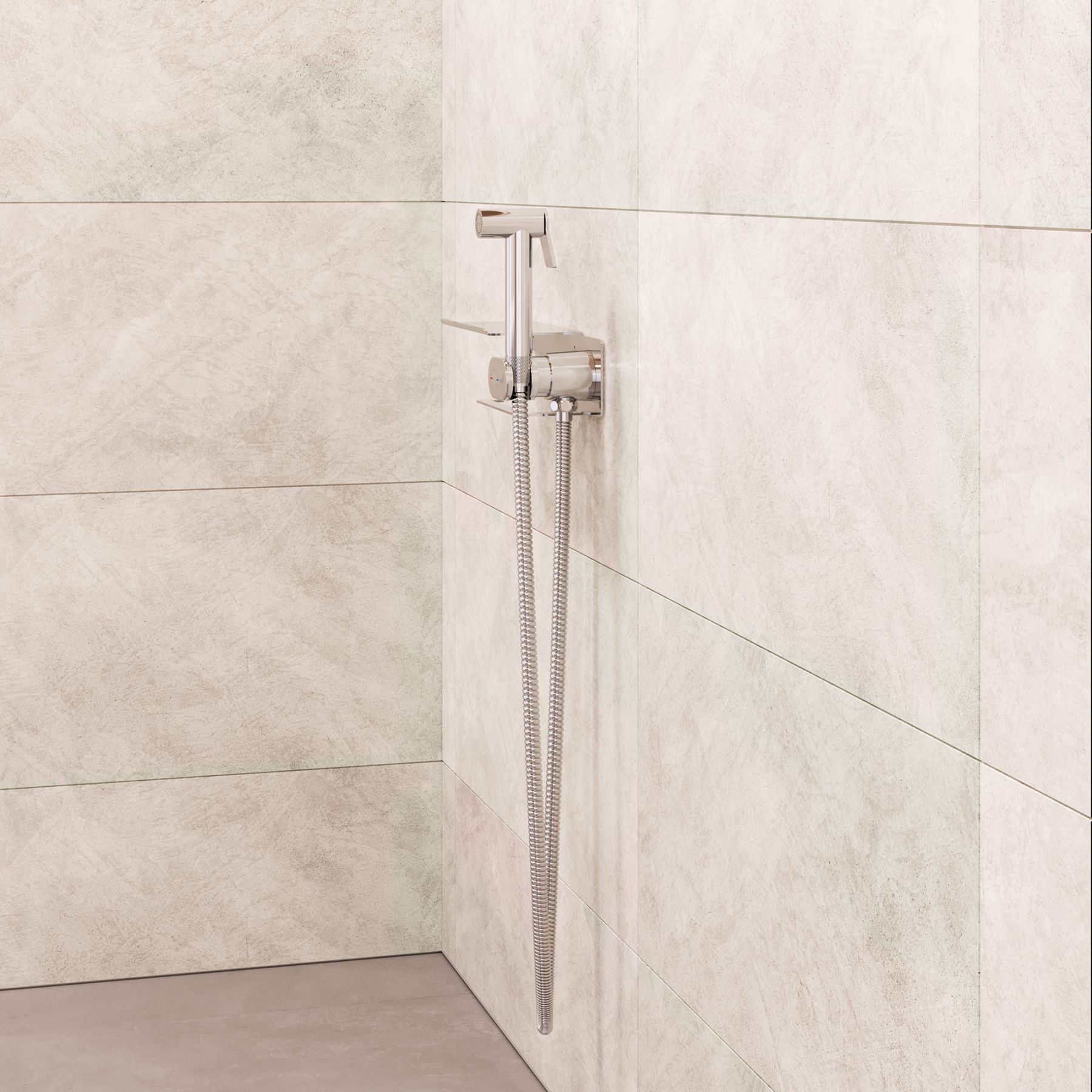 Гигиенический смеситель с прогрессивным картриджем, встраиваемый в стену, с накладной полкой и ... Подробнее