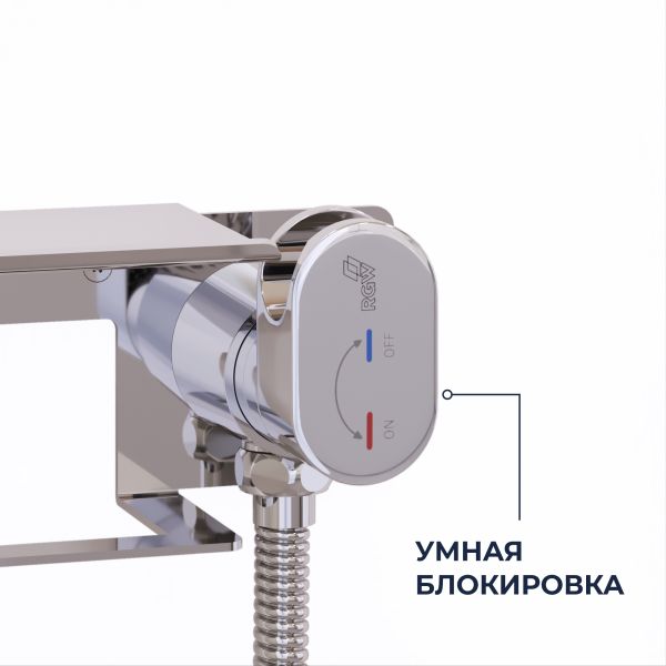 • Умная блокировка решает часто возникающую проблему при использовании обычного смесителя с гигиеническим душем. Она предотвращает смешивание холодной и горячей воды в трубах из-за разного давления, что поможет избежать неприятных сюрпризов с холодными или же горячими струями при следующем использовании.