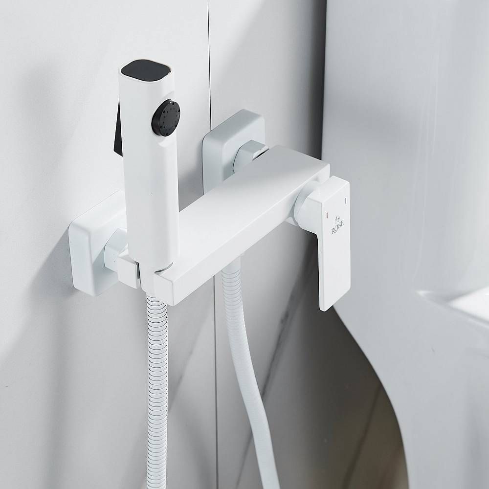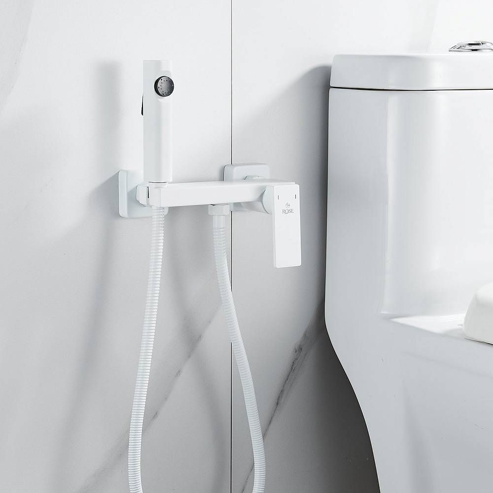 Гигиенический душ со смесителем Rose R1805C-1, белый.Управление: рычажное.Материал: латунь.Монтаж: настенный.