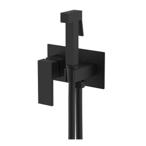 S97.52.06 Встраиваемый гигиенический душ, выполнен из латуни в черном цвете, шланг 120 см и лейка в комплекте.