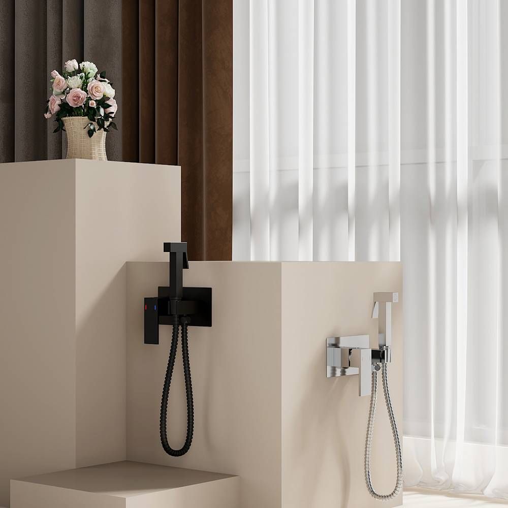 S97.52.06 Встраиваемый гигиенический душ, выполнен из латуни в черном цвете, шланг 120 см и лейк... Подробнее