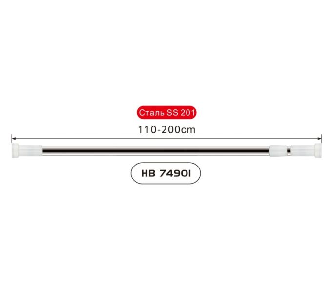Haiba HB74901 карниз телескопический для ванной, сталь