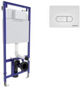 Металлический каркас, окрашенный антикоррозийной эмалью.Расчетная нагрузка 400кг. Толщина бачка 80мм. Подходит для установки в малогабаритных помещениях.Объём резервуара воды 10 л с тепло- и шумоизоляцией.При давлении 3-5 бар уровень шума от 13 до 18 дБ.Подвод воды сверху (G1/2 наружная).Объем смыва 3/6 литра с возможностью регулировки.Управление механическое, две кнопки.Межосевое расстояние под шпильки для подвеса унитаза 18 и 23 см.Ножки регулировки высоты из оцинкованной стали. Полный комплект для быстрой установки.
