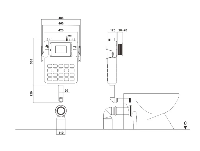 Инсталляция для унитаза Cerutti SPA CR333Инсталляция CR333 для приставных унитазов бренда Ceruttispa предназначена для крепления к капитальной стене/гипсокартону. Монтажная глубина составляет всего 120 мм, что позволяет устанавливать ее в ограниченном пространстве, максимально экономя свободное пространство уборной комнаты. Необходимое давление в смывном бачке для максимально мощного смывного потока воды создается объемом смывного бачка - полный объем которого составляет 10л! Оболочка из пенопласта защищает его от образования конденсата, а также создает дополнительную шумоизоляцию при наборе воды. Такой тип бачка исключает риск протечки. Механическое управление смыва обеспечивает бесперебойную работу на весь срок службы. Стоит заметить дополнительное удобство данной инсталляции в том, что сервисное обслуживание смывного бачка в случае необходимости осуществляется через окно, находящееся за кнопкой смыва.Технические данные:Диаметр слива: 110 мм