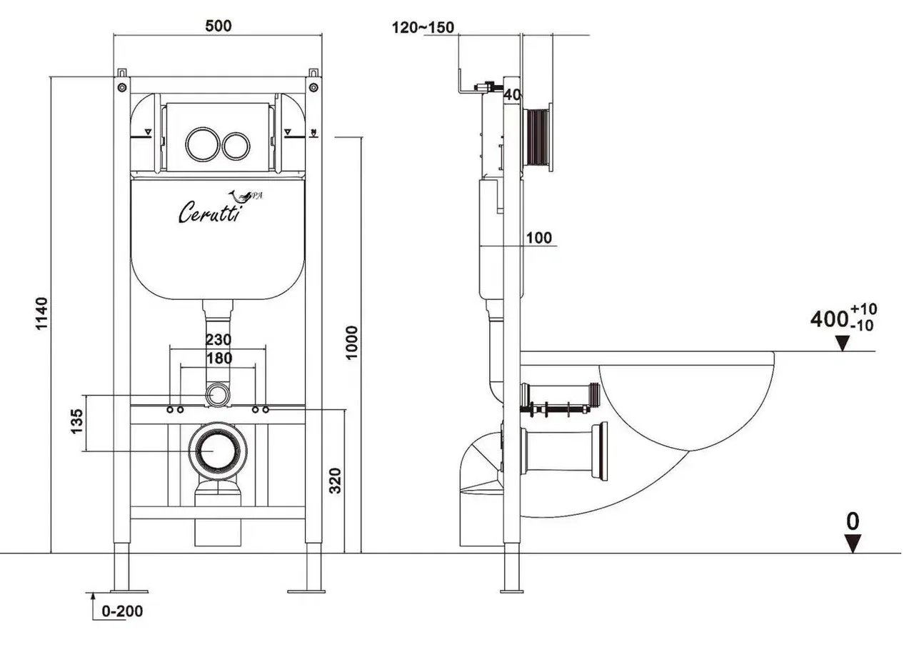 Инсталляция для унитаза Cerutti SPA CR557 с рамой повышенной коррозионной стойкости