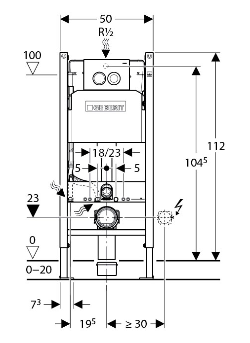Инсталляция Geberit Duofix 458.124.21.1 Delta UP100 с кнопкой смыва для унитаза хром