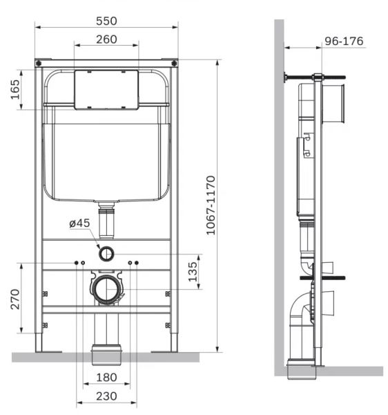 • Ножки монтажной рамы регулируются в пределах от 0 до 13 см – вы сможете зафиксировать унитаз на удобной высоте.