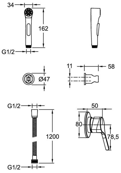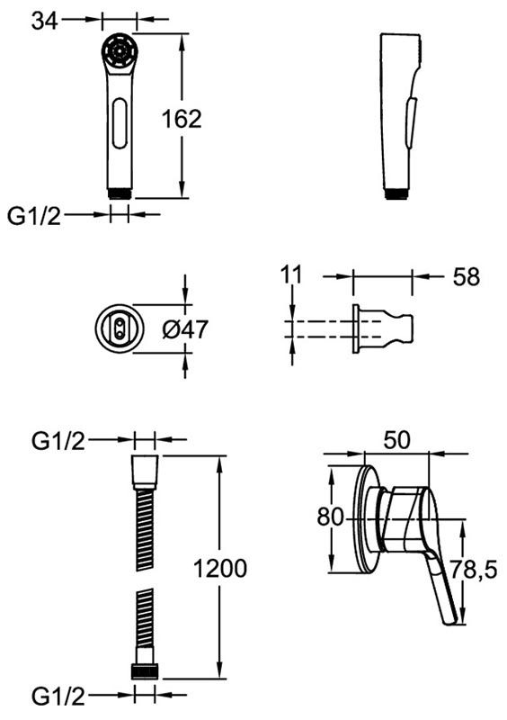 Комплектация: Смеситель, лейка с держателем, коленное соединение, шланг
