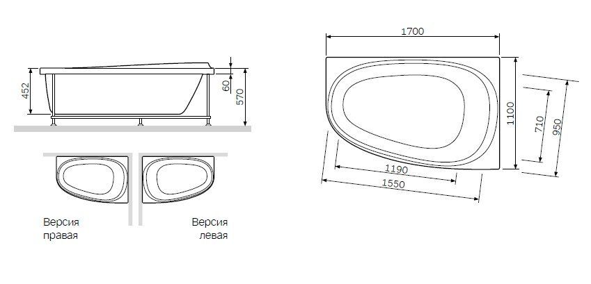 W80A-170R110W-R Like, каркас 170х110 см, правосторонний Подробнее