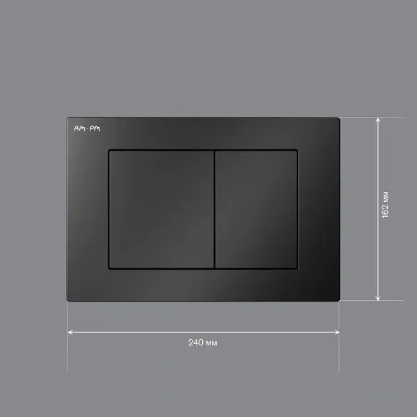 Клавиша смыва Am.Pm PrimeFit I090238 механическая черная матоваяКнопка смыва бренда AM.PM коллекции PrimeFit S представлена в лаконичном дизайне с механическим управлением смыва. Все крепления в комплекте. Размер изделия (Ш/Г/В): 240x10x162 мм. Цвет: черная матовая. Форма кнопок: прямоугольные. Материал: пластик..