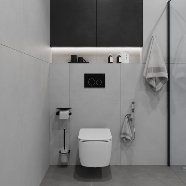 Черная клавиша IDDIS® Unifix составит базовый комплект с подвесной сантехникой – изделие совместимо со всеми моделями инсталляций IDDIS®. Хромированный контур круглых кнопок выступает ярким акцентом, превращая функциональный продукт в стильный аксессуар. Плоская и эстетичная клавиша смыва займет пространство размером не более ежедневника (24,5 на 16,5 см). Она легко монтируется и снимается для удобного доступа к крану открытия-закрытия воды и обслуживания арматуры. Модель доступна в нескольких цветовых сочетаниях.